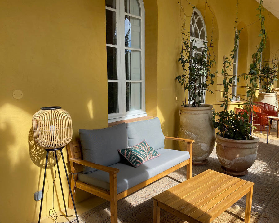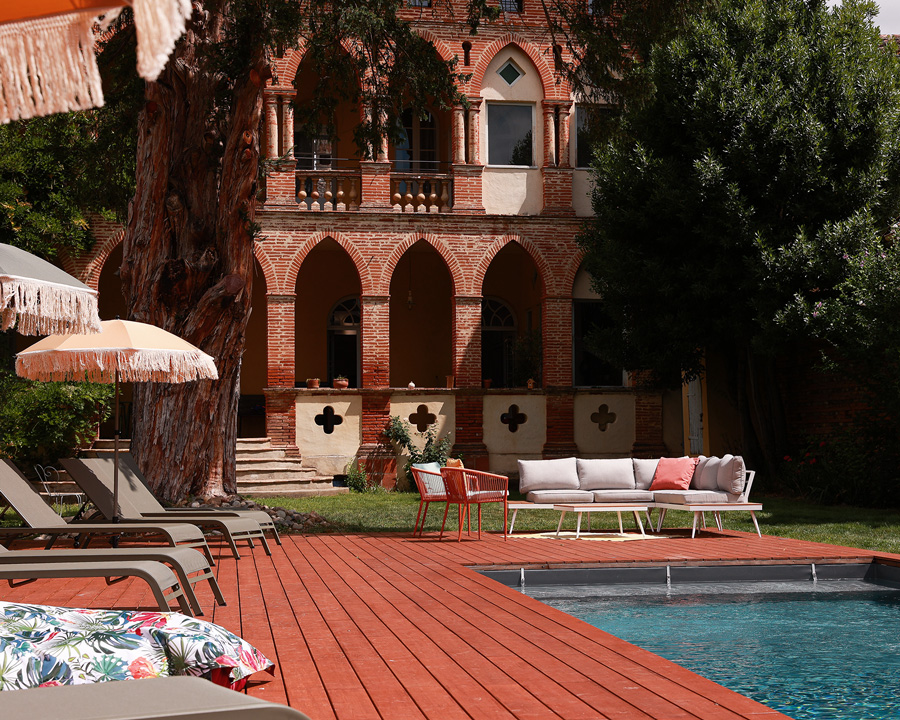 Une terrasse couverte et ombragée pour les petits déjeuners ou l’apéritif ; une grande piscine dans un jardin calme et verdoyant, son architecture atypique, des chambres avec terrasses privatives dédiées au confort et la détente, 2 suites familiales, un honesty bar pour des moments de partage…